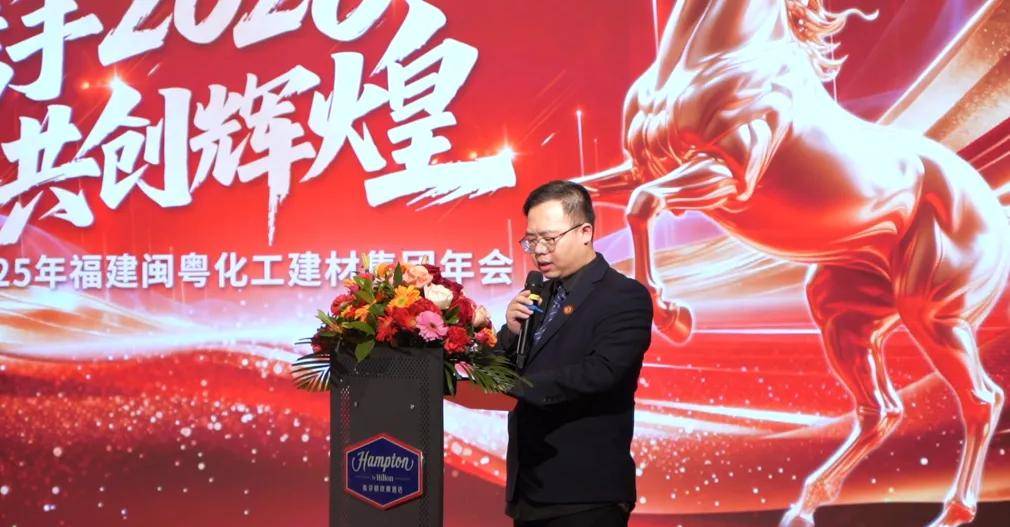 主持人热情开场后,碧丽副总经理王逸上台致辞。他在致辞中回望过去一年,重点提及碧丽花岗岩石漆在销售体系升级与客户服务优化方面取得的亮眼突破,全面总结了集团2025年的发展成果,并清晰擘画了2026年的发展蓝图。