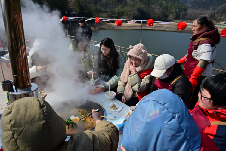 隨著魚宴開席,眾人圍坐在一起,大鍋柴火魚熱氣騰騰,象征著“年年有余”的美好寓意,現場笑語連連,年味濃郁。